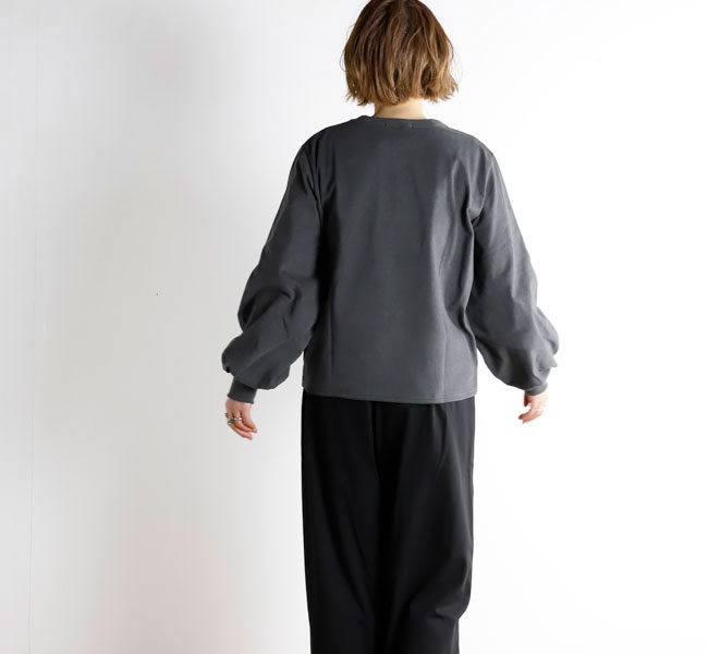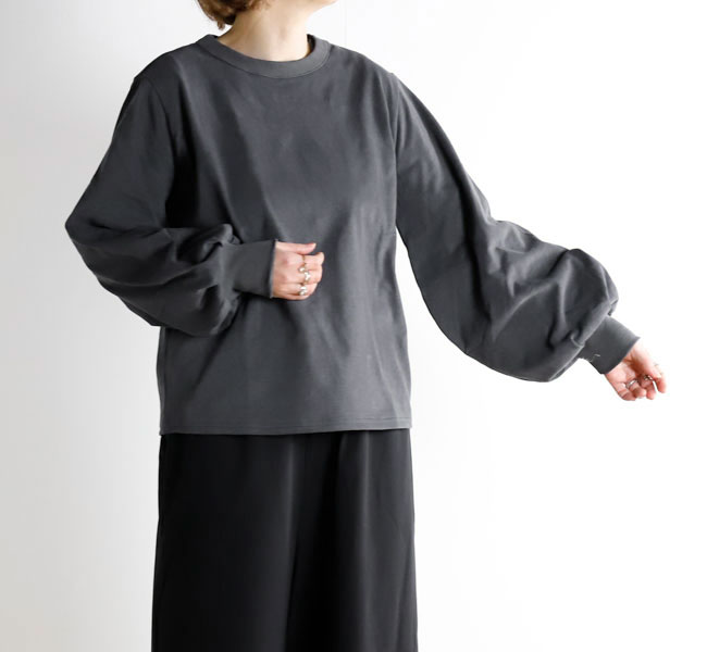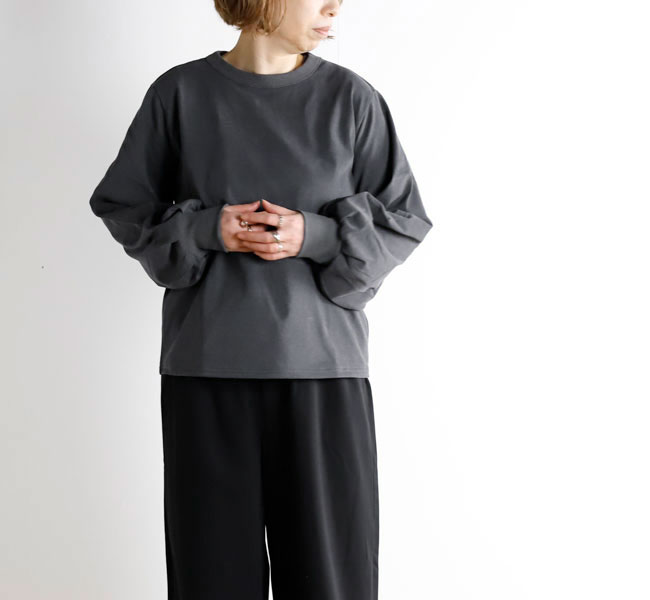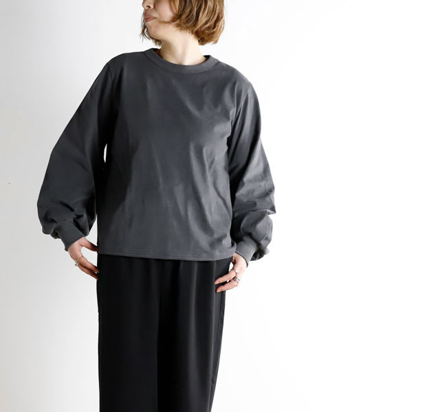 ビンテージライクな風合いと雰囲気が特徴のパフスリーブロングTシャツ。環境にも配慮している16/天竺を使用。袖口をフィットさせたデザインでふんわりとしたパフスリーブを表現。程よいゆとりの身幅にクルーネックのシンプルな1枚で季節の変わり目にお勧め。