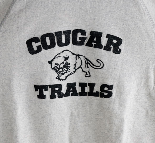 フロントにはクラシックなカレッジ風デザインの "COUGAR TRAILS" を大胆プリント。