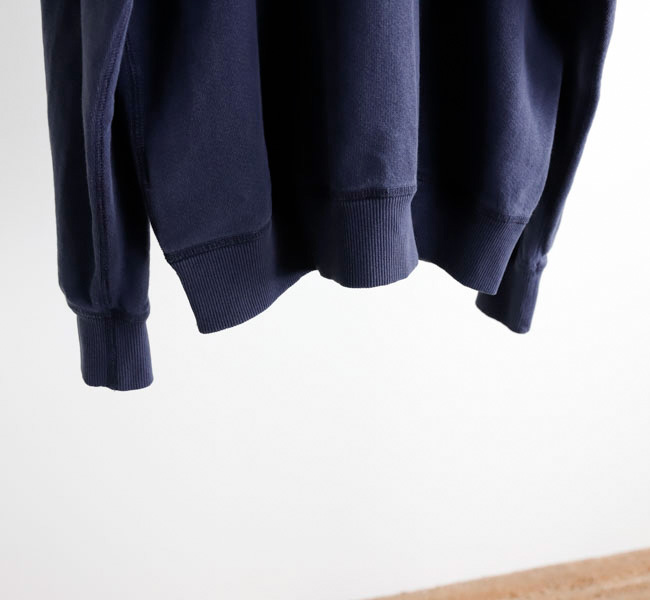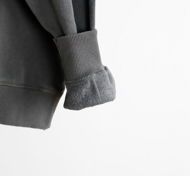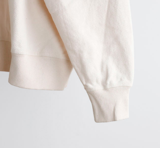 裏起毛で程よい厚みの生地感は、素肌にも心地良くストレスフリーな着用感。