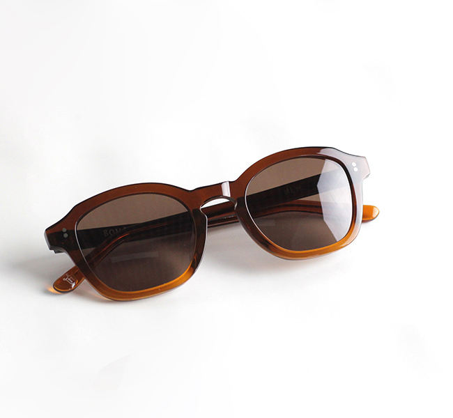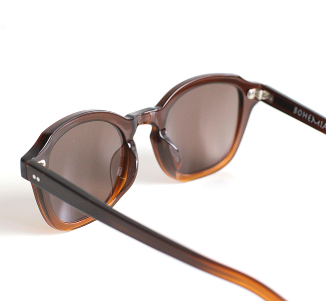 プログレッシッブジャズの演者の聖地カフェ・ボヘミアより ヴィンテージサングラスの質感を再現する為に4ミリ厚まで削り落としたフロントリムと程良くボリュームのあるフロントスタイルはシーンを選ばないモデル。