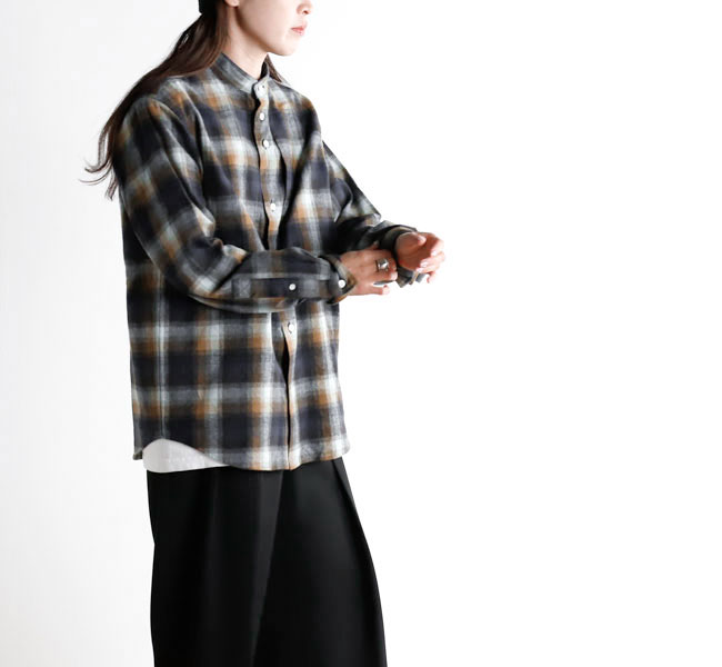 こちらは起毛感のあるコットン素材のチェックブルーブラウン柄。