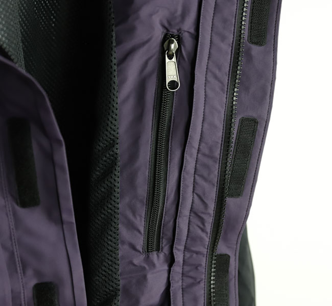 ・左右サイドと胸にベンチレーション兼用ポケット ・フロントはフラップ付きで雨の浸入を軽減