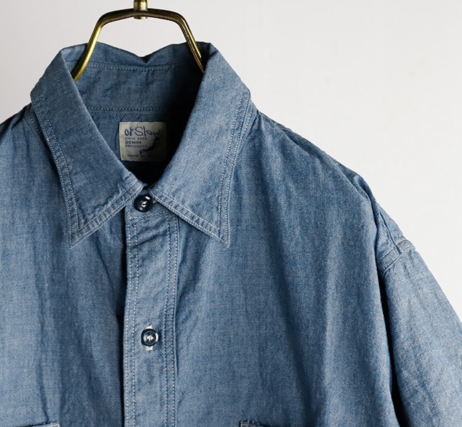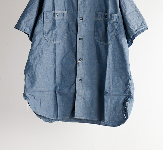 春夏の定番アイテム、ショートスリーブのシャンブレーワークシャツ。