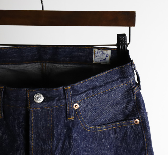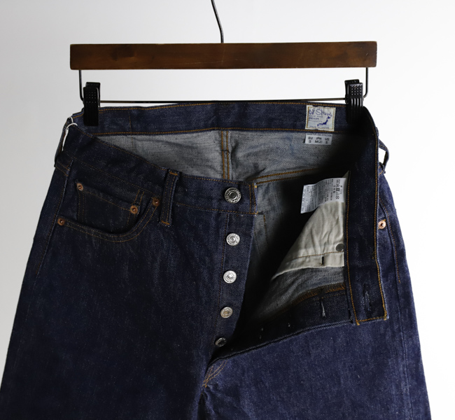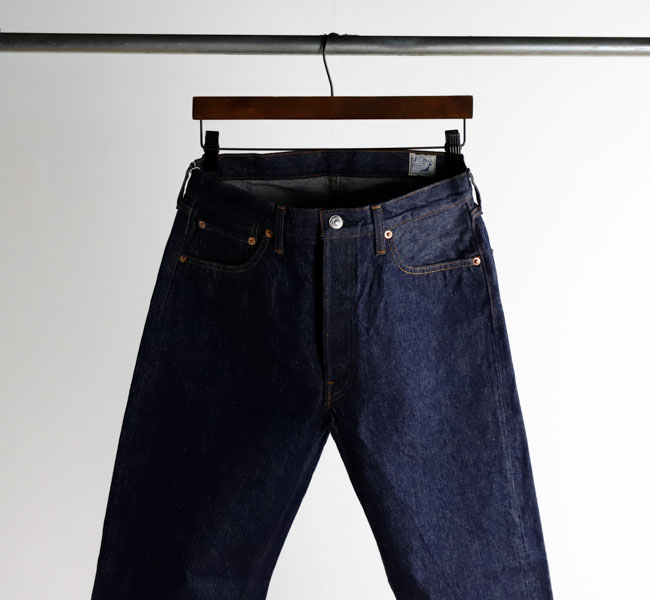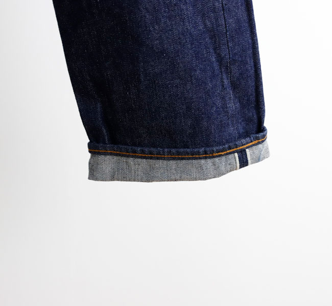 伝統的なスタイルをベースに、14ozのオリジナルセルヴィッチデニムを使用しており、耐久性と風合いが魅力です。