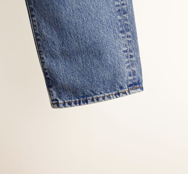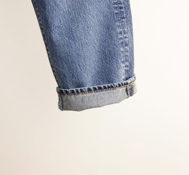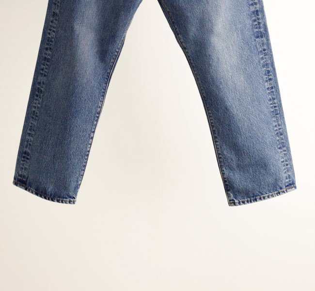1990年代の最もスタンダードな5ポケットをイメージしたデニムパンツ。レンングスをやや短めに設定しています。