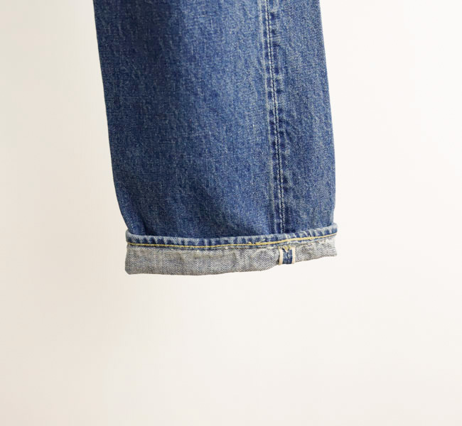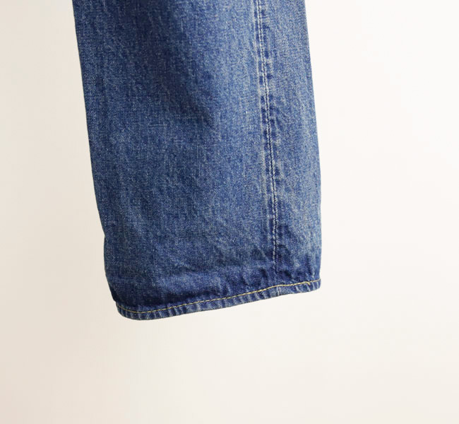 1960年代初期のベーシックな5ポケットジーンズを再現したパンツ。1960年代初期の素材を研究し、オリジナルで作成した生地を使用しています。紡績、染色、織り全てにおいて吟味した生地は、着用と洗濯の繰り返しにより経年変化し、愛着の湧く1本になります。シルエットは60年代当時のアイビーリーガーに好まれていた細身のストレート。こちらは2Year Wash。