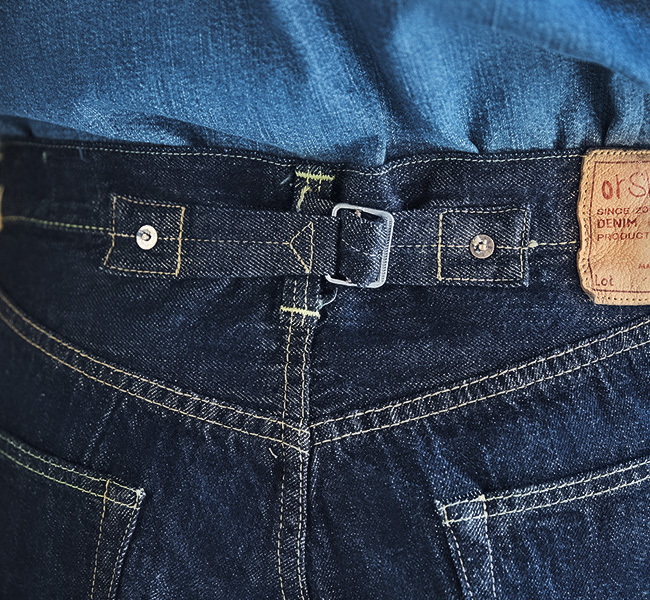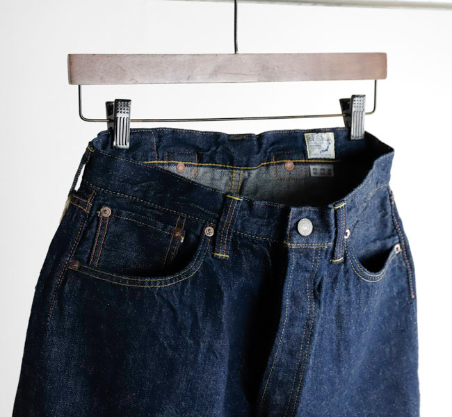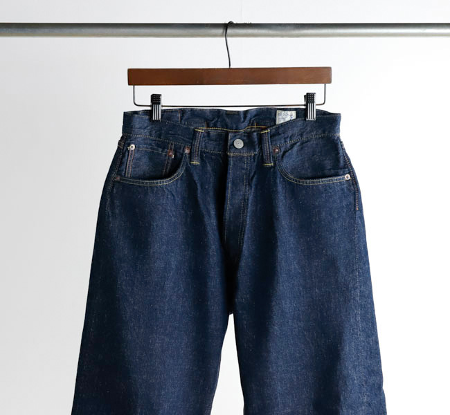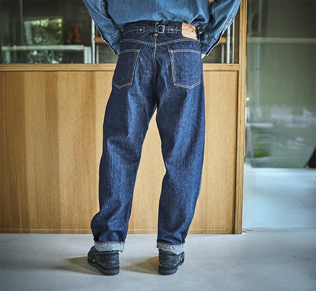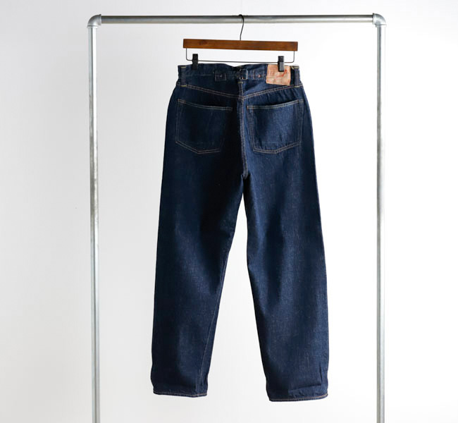 1930年代のVINTAGE JEANSをモチーフに下デニム。素材にはソフトな風合いのオリジナルデニムを使用。縫製は1930年代の仕様を参考に人気のDAD'S FITのシルエットに落とし込みました。