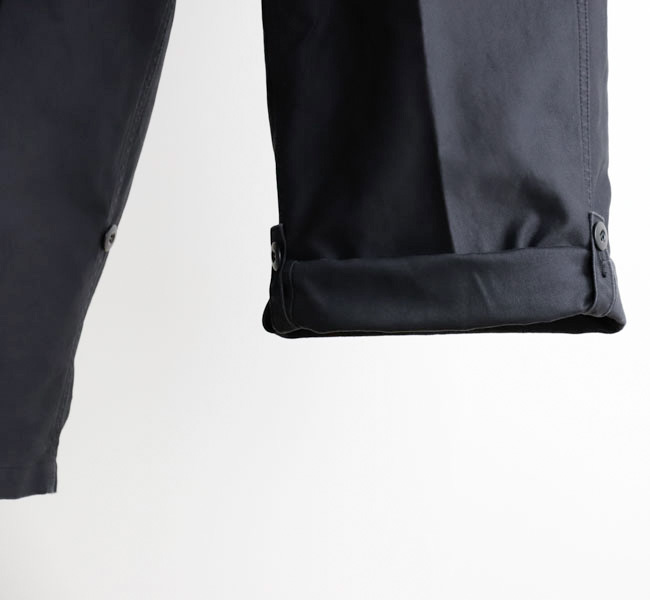 打ち込みがしっかり入ったサテンを使用し、重量感のあるどっしりとした丈夫なカーゴパンツに仕上がってます。