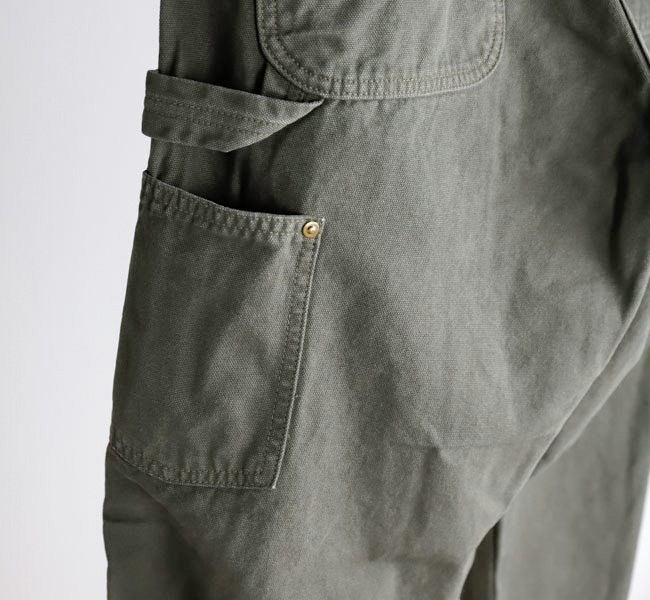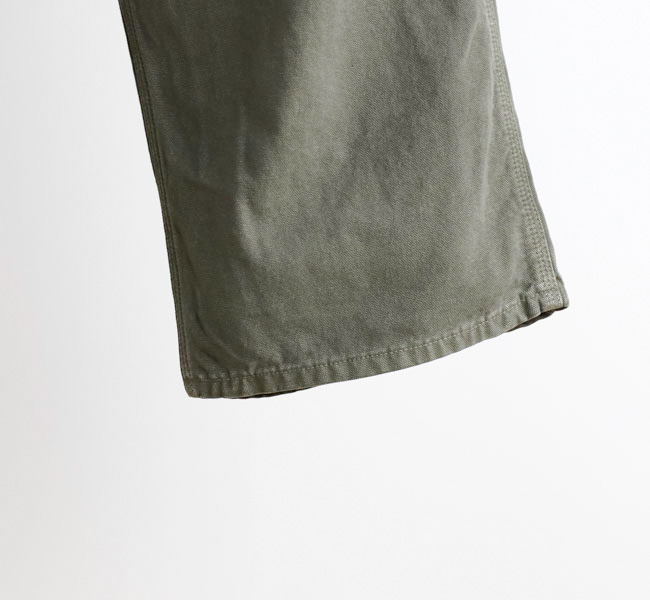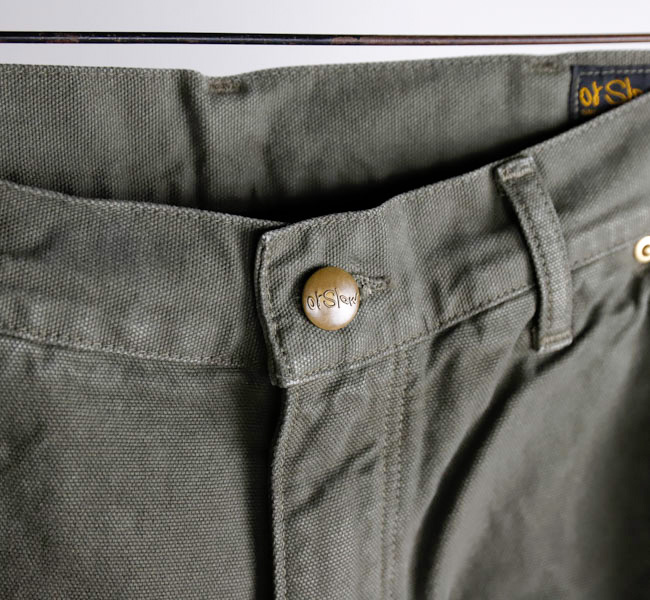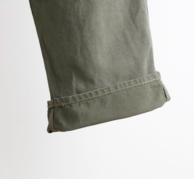 素材には本格的なワークスタイルのオックスを使用し、製品での後加工によりUSED感を表現してあります。