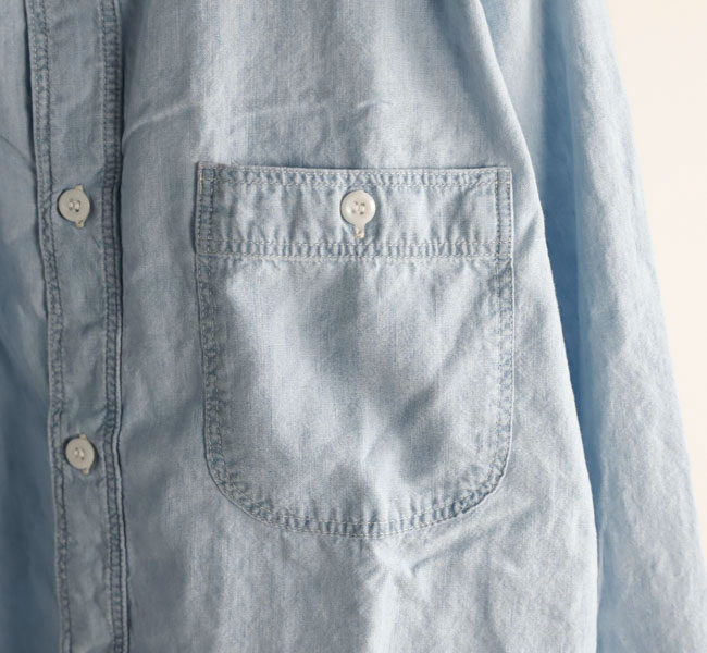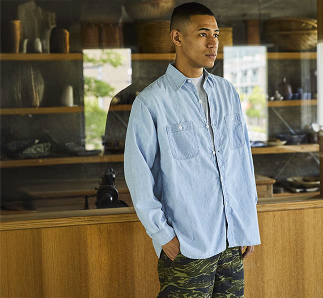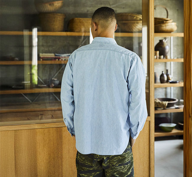 1940年代のU.S. NAVYのシャンブレーシャツからインスピレーションを得て、ミリタリーの機能美を現代的に再構築。