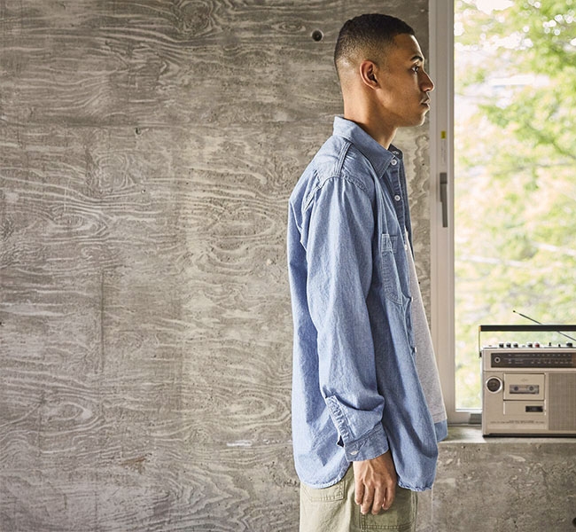1940年代のU.S. NAVYのシャンブレーシャツからインスピレーションを得て、ミリタリーの機能美を現代的に再構築。