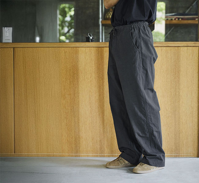 スーピマコットンとウーリーナイロンを使用した交織素材のNEW YORKER PANTS。