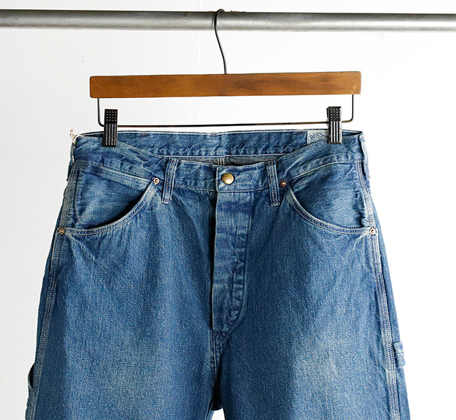 ハンマーループや、ツールポケットなど、ワークウェアらしいディティールも満載。前立てはボタンフライで 股上は深めの設定。