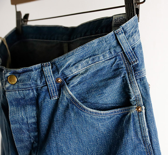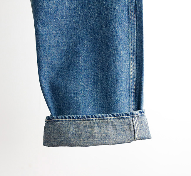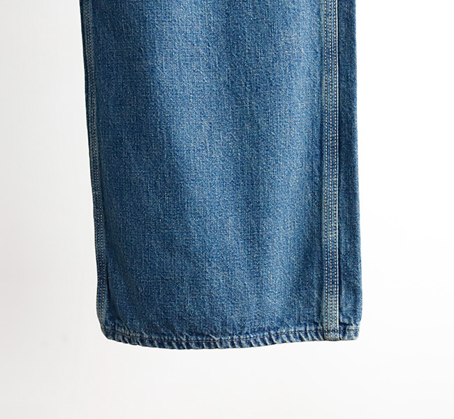生地は9オンスのオリジナルデニム。 糸から製作されたオリジナルは当時のヴィンテージを研究し製作された 完成度の高いライトオンスデニムです。 こちらは程よい色落ちなユーズド加工モデルです。