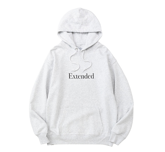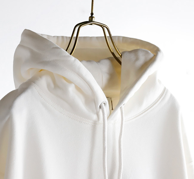 SILENT POETS から連想されるキーワードをプリント。綺麗な表面感とソフトな肌触りを追求した10 OZ裏起毛プルオーバーパーカー。