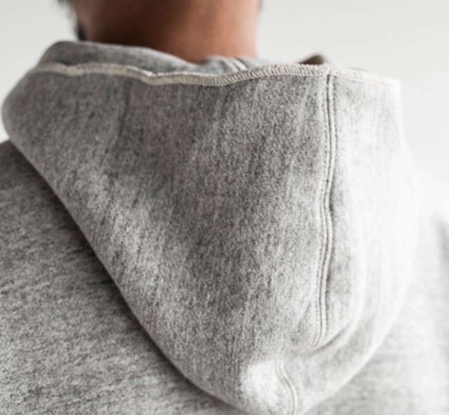 忠実に再現すると、ダブルフェイス仕様となるところを、グローブポケット・ロックフーディー・クロスネックといったディティール特徴は踏襲しつつ、シングル仕立てにアレンジした一品。