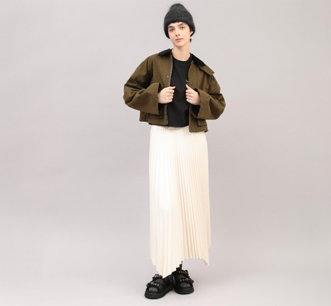 シーズンムード溢れるクロップド丈とワイドスリーブデザインでスタイリングをランクアップさせてくれる一着です。裏地付き。