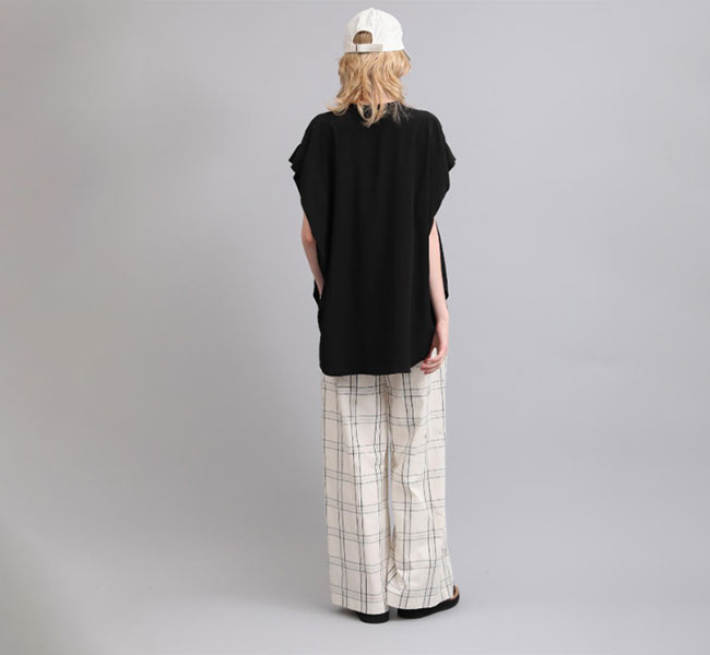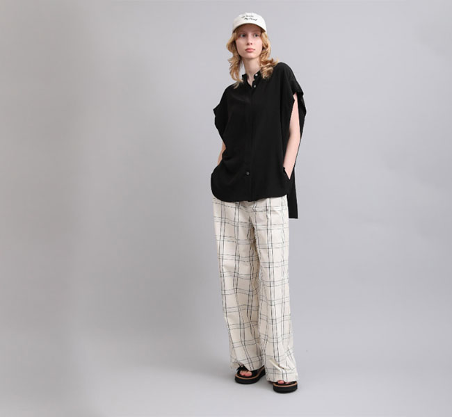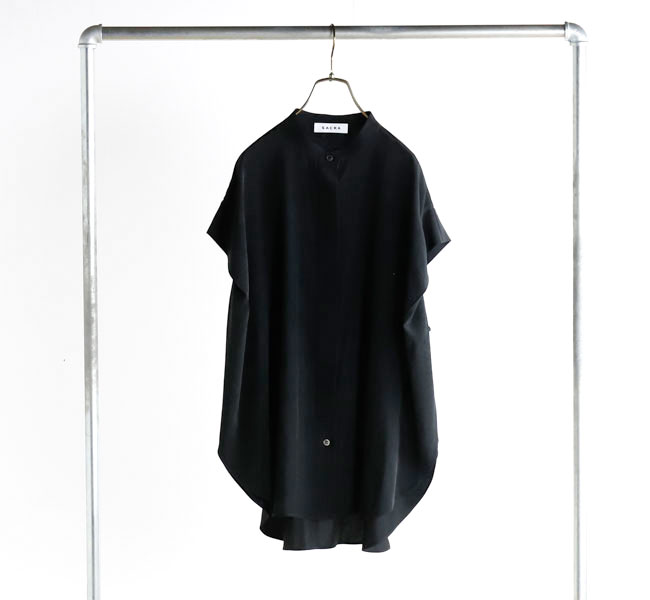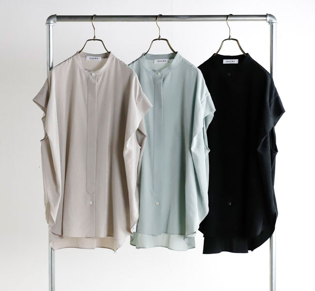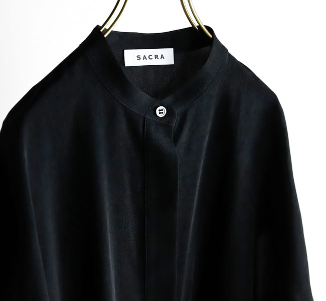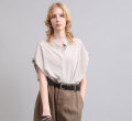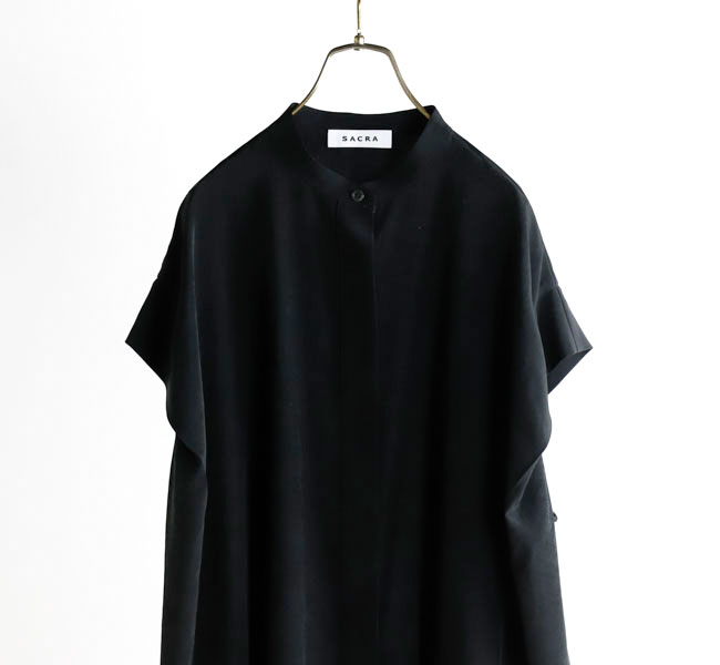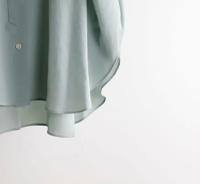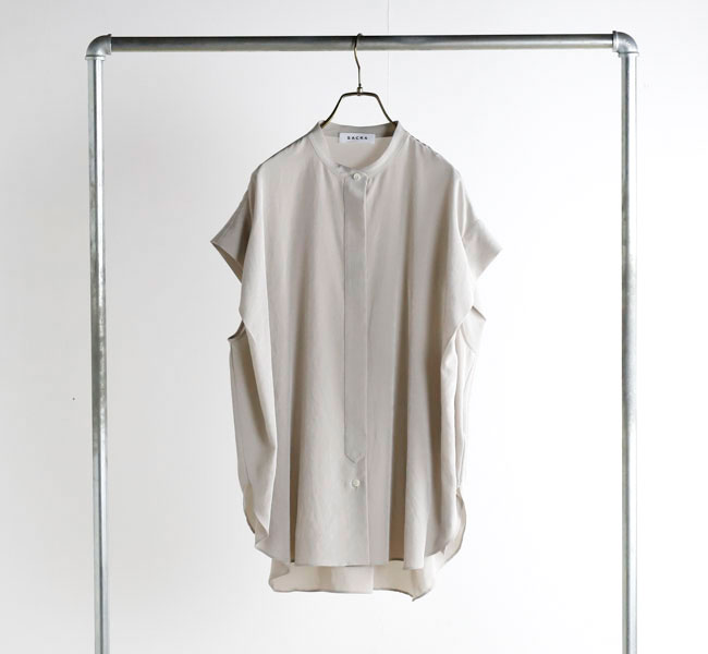 柔らかな風合いとシルクのような肌触りが特徴の素材を使用したバンドカラートップ。