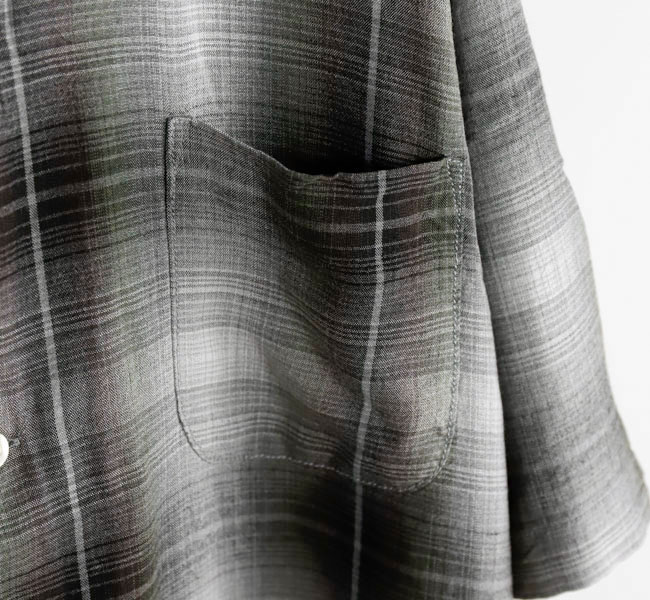 ・小ぶりな襟とラウンド形状の胸ポケットのディテール、縫製も丈夫で丁寧な縫い上げが特徴です。