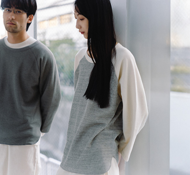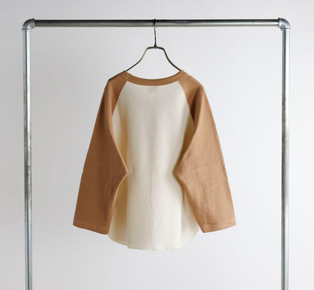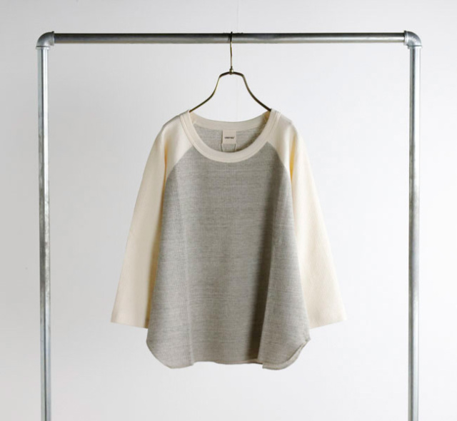 オリジナル素材を使用したワッフル生地の3/4カットソー。