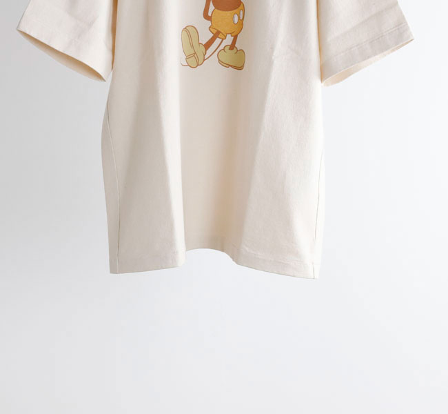 無染色素材とカルチャー性のあるグラフィックを融合させたコラボレーション。 ナチュラルな風合いと遊び心のあるデザインを取り入れたい方や、着心地の良いカットソーを求める方に適した半袖プリントTシャツ。
