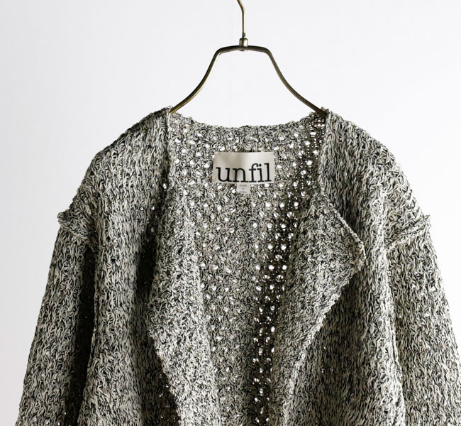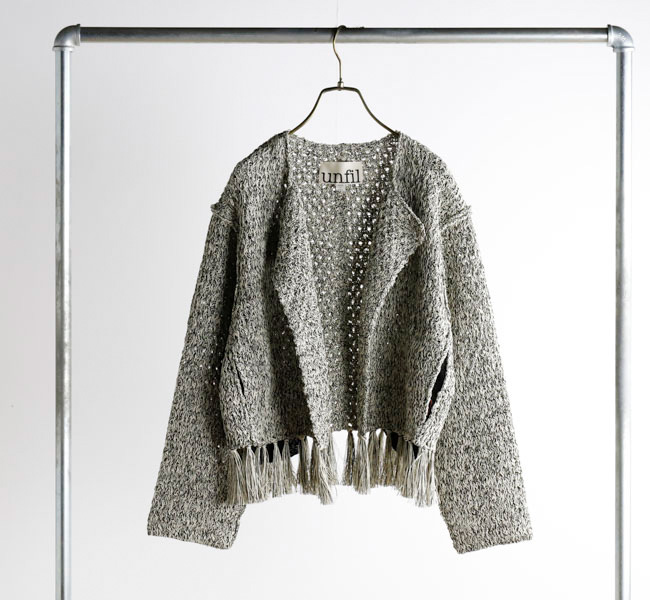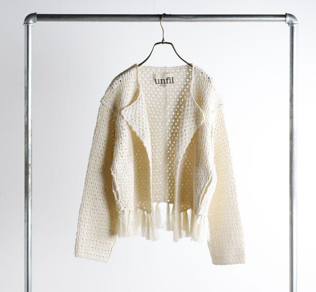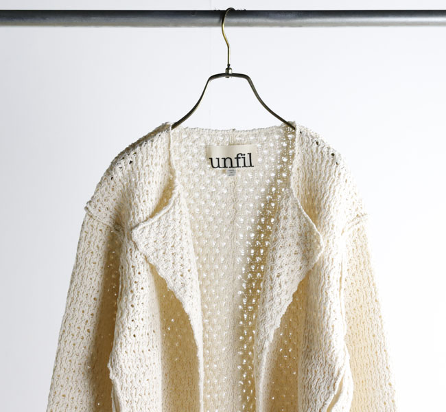 ニットブランド「イリアンローブ」のデザイナーとして活躍した小松さおりが2017年にスタートしたunfil(アンフィル)。フランス語で「1本の糸」を意味します。素材から徹底的にこだわり、シルエットやディテールを考え抜き、丁寧に作り上げた着心地が良くシンプルで特別な洋服のコレクション。