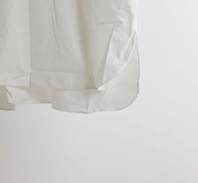 ハリのあるコットン生地を使用し、着用するごとに馴染んでゆくのが特長です。