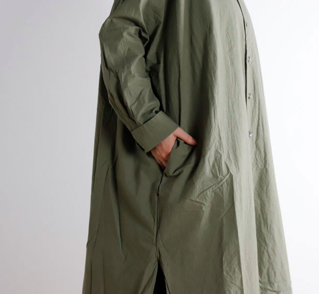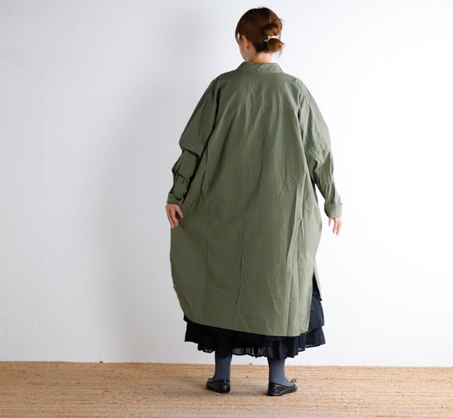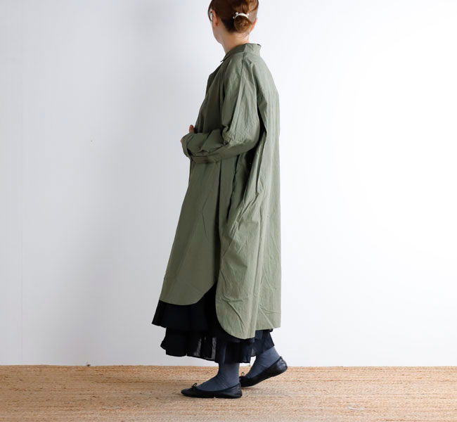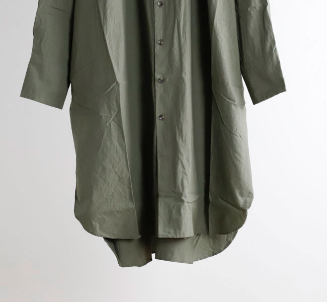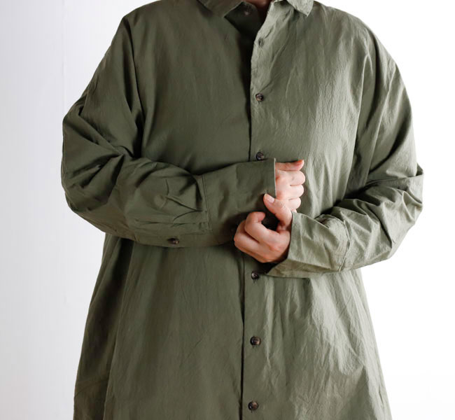 長くご好評いただいているロングシャツ。VC-1962型と同じシルエットです。ゆとりある身幅と、風通しの良い着心地も魅力です。前開きなので、軽い羽織としても大変便利なアイテムです。
