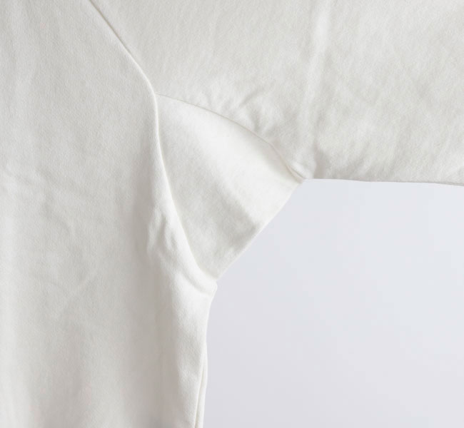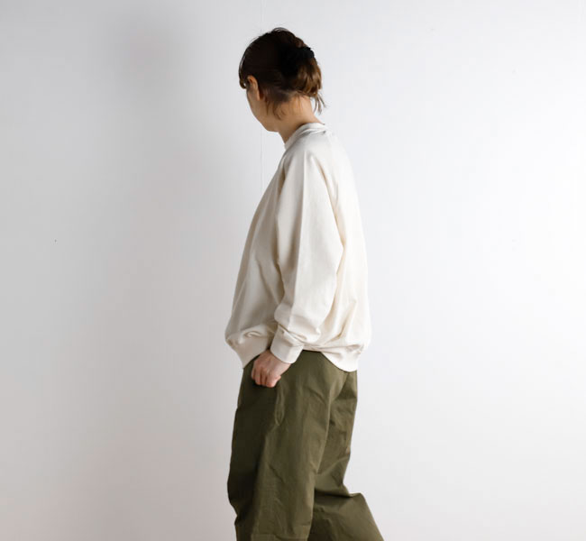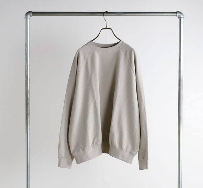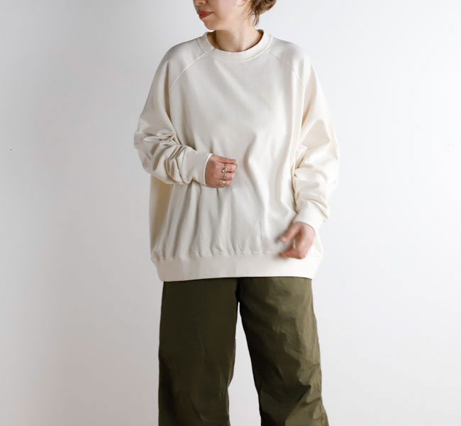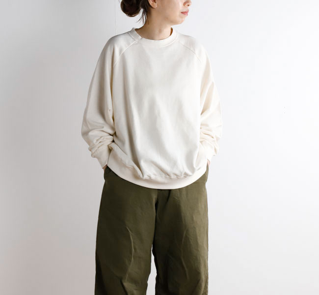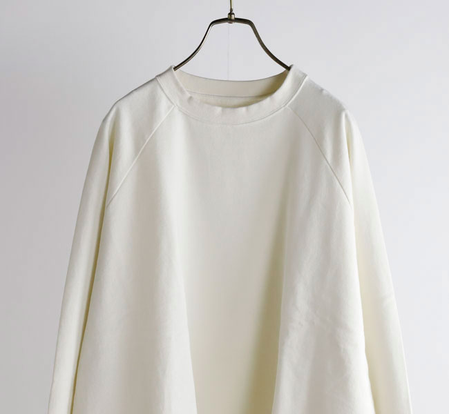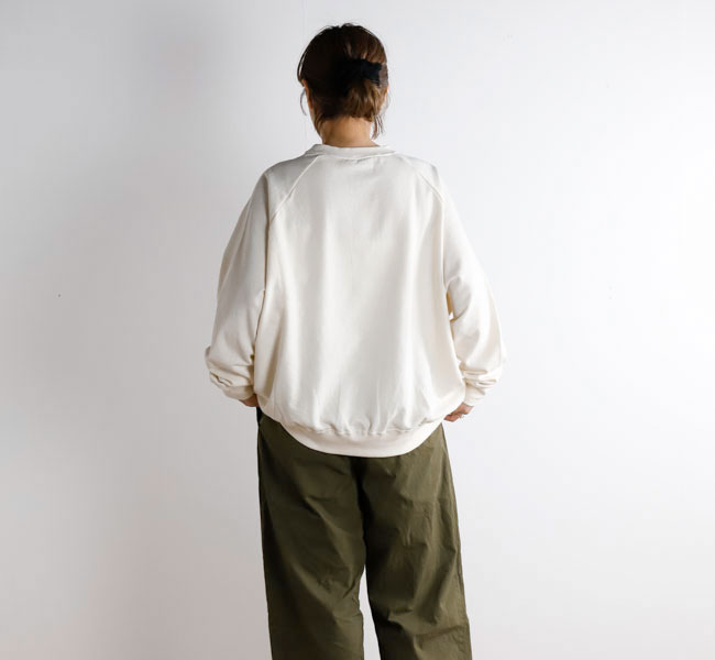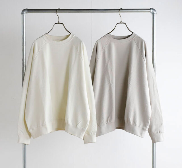オーガニックコットンの空紡糸を使用してお作りしたスウェットです。トルコ・エーゲ海イズミール地方で栽培される長綿のオーガニックコットンで、コットンは一般的に繊維長が長いほど高級とされ、しなやかで上質な糸をつむぐことができます。生地表面に傷を入れたような仕上げを施しております。裏毛はパイル状に編みこまれており、タオル生地のようにループさせている為、保温性に優れている上、吸水性もあります。