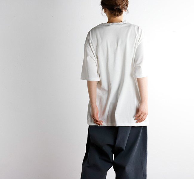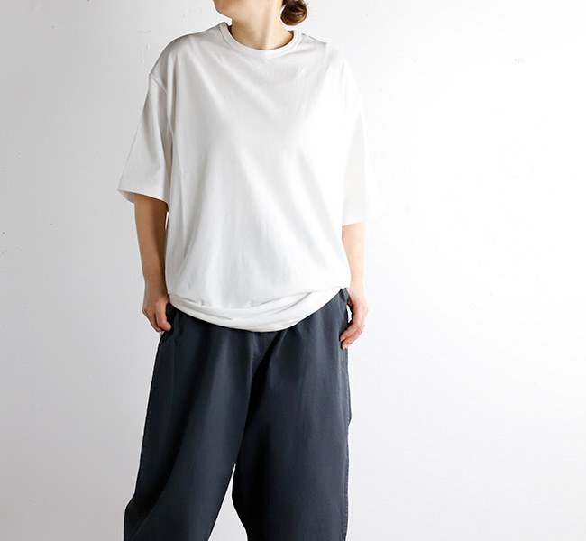 ショートスリーブTee。甘撚りの柔らかい糸をプレーティング編みし、更に特殊柔軟、バイオ加工を施しています。