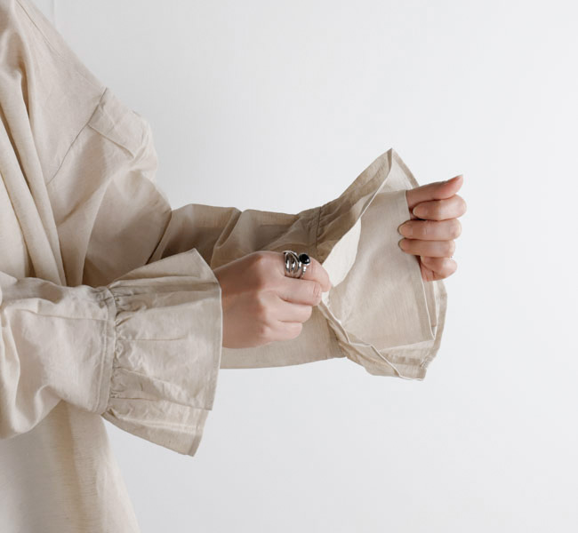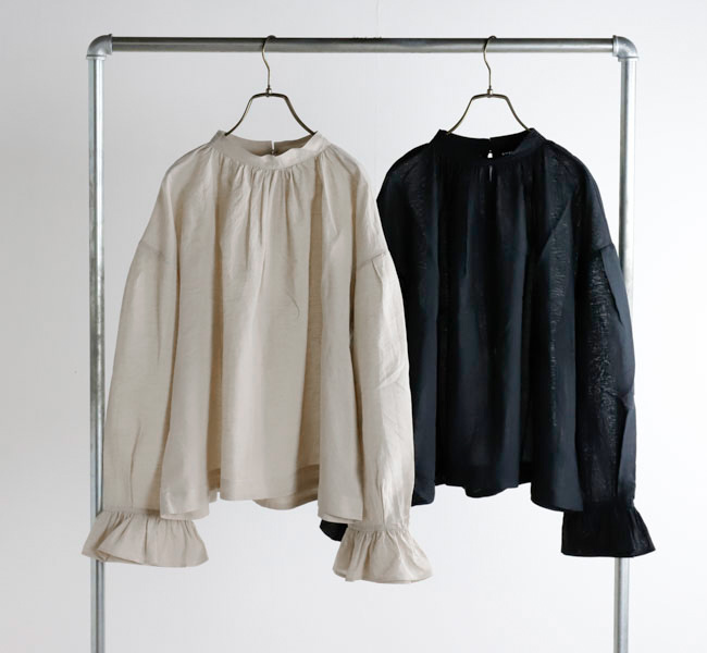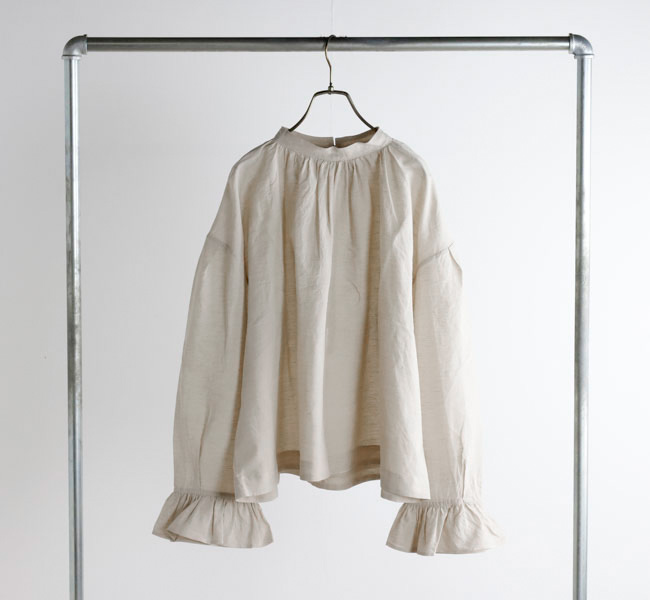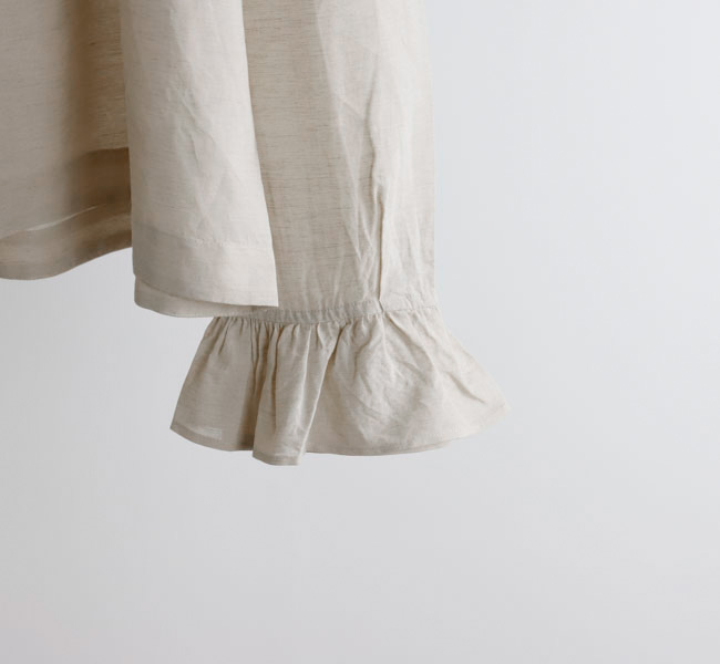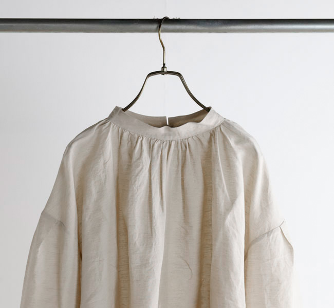 薄手で軽やかなコットンリネン素材を使用したブラウスです。オリジナルで製作した生地は、毛羽を焼いた光沢のあるコットン糸の上質さにリネン糸のシャリ感やナチュラルさを組み合わせた風合いが魅力です。
