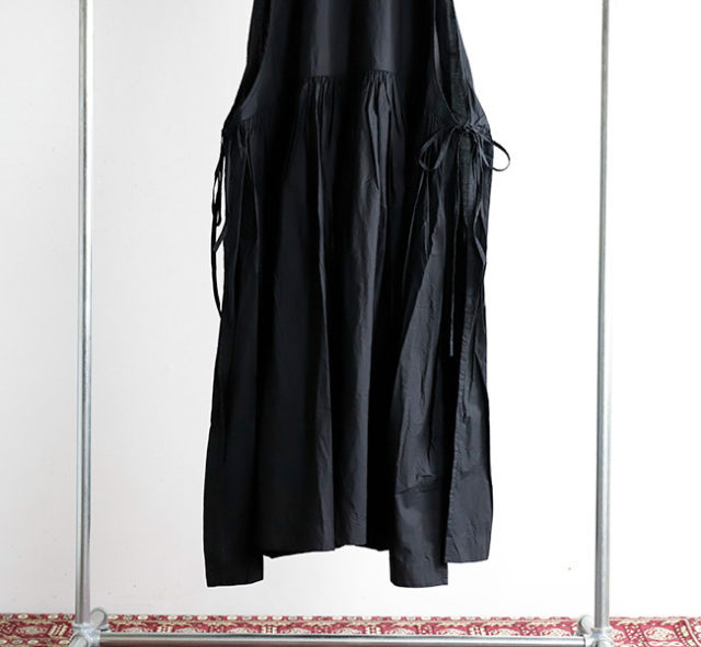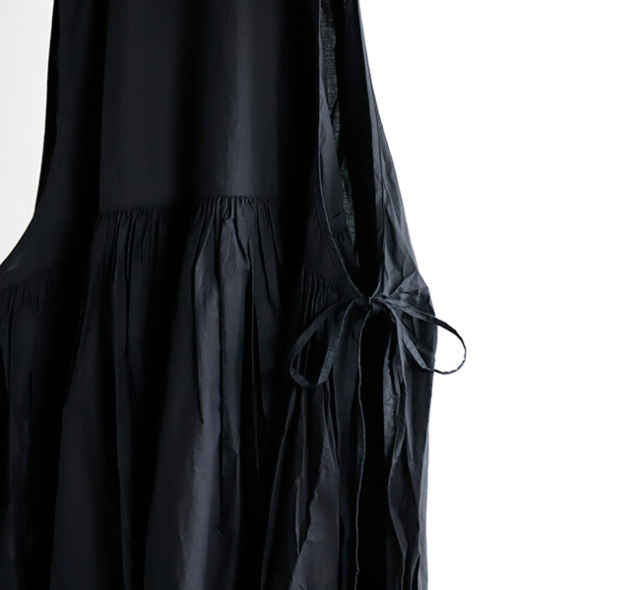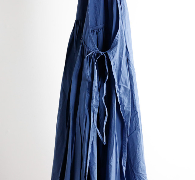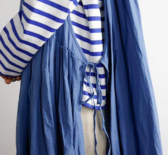 サイドに紐が付いており、結び方次第で色々な着こなしが楽しめます。