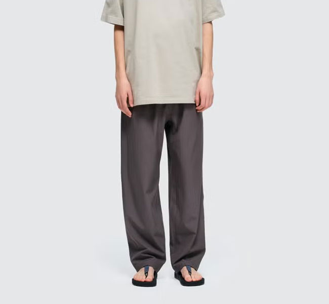 UVカットとストレッチ性を備えたポリエステル素材を使用したイージーパンツ。