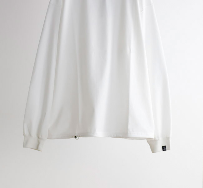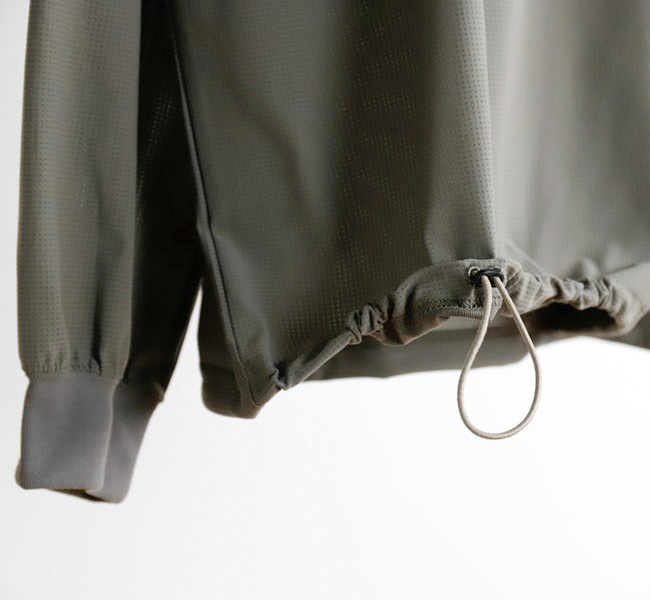 ゆったりとしたサイズ感で裾のドローコードでシルエットの変化が可能.
