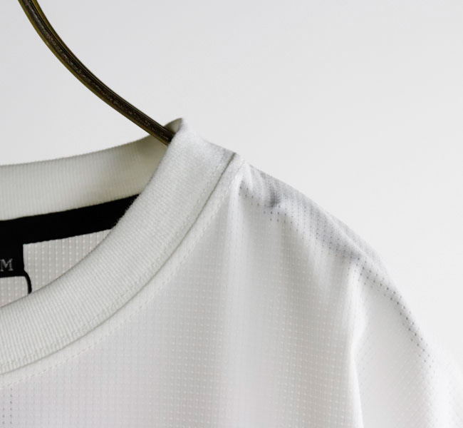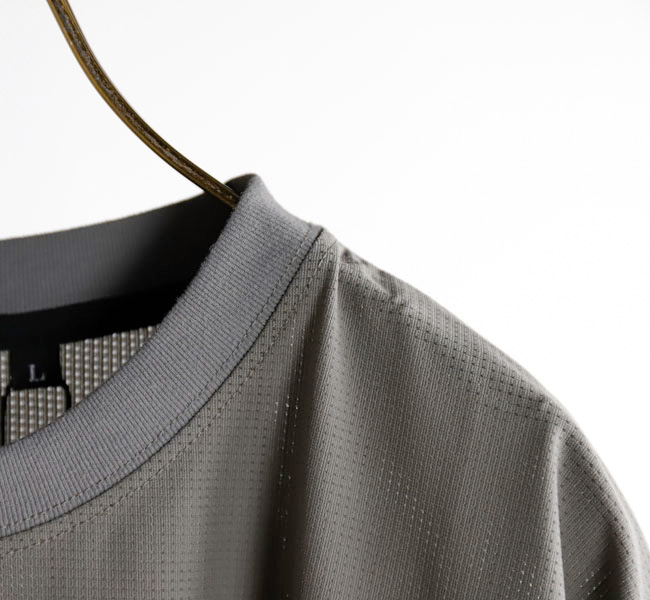 東レの機能素材FLE X DR Yを使用し、メッシュ組織で編み立てられた高い通気性が特徴の機能Tシャツ。