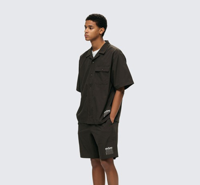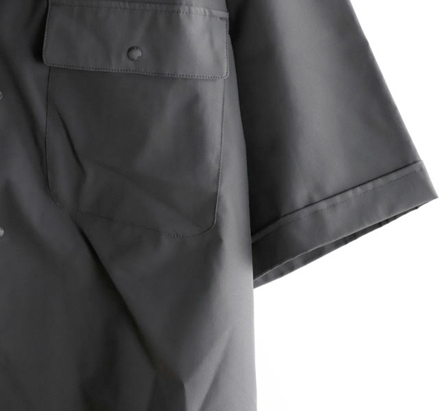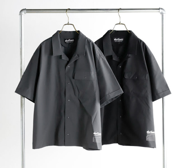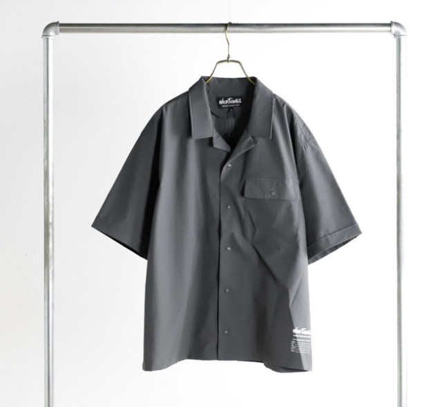 ベーシックなオープンカラーシャツを、UVカット・吸水速乾・微ストレッチの機能性素材で仕立てたWILD THINGSらしい一着。
